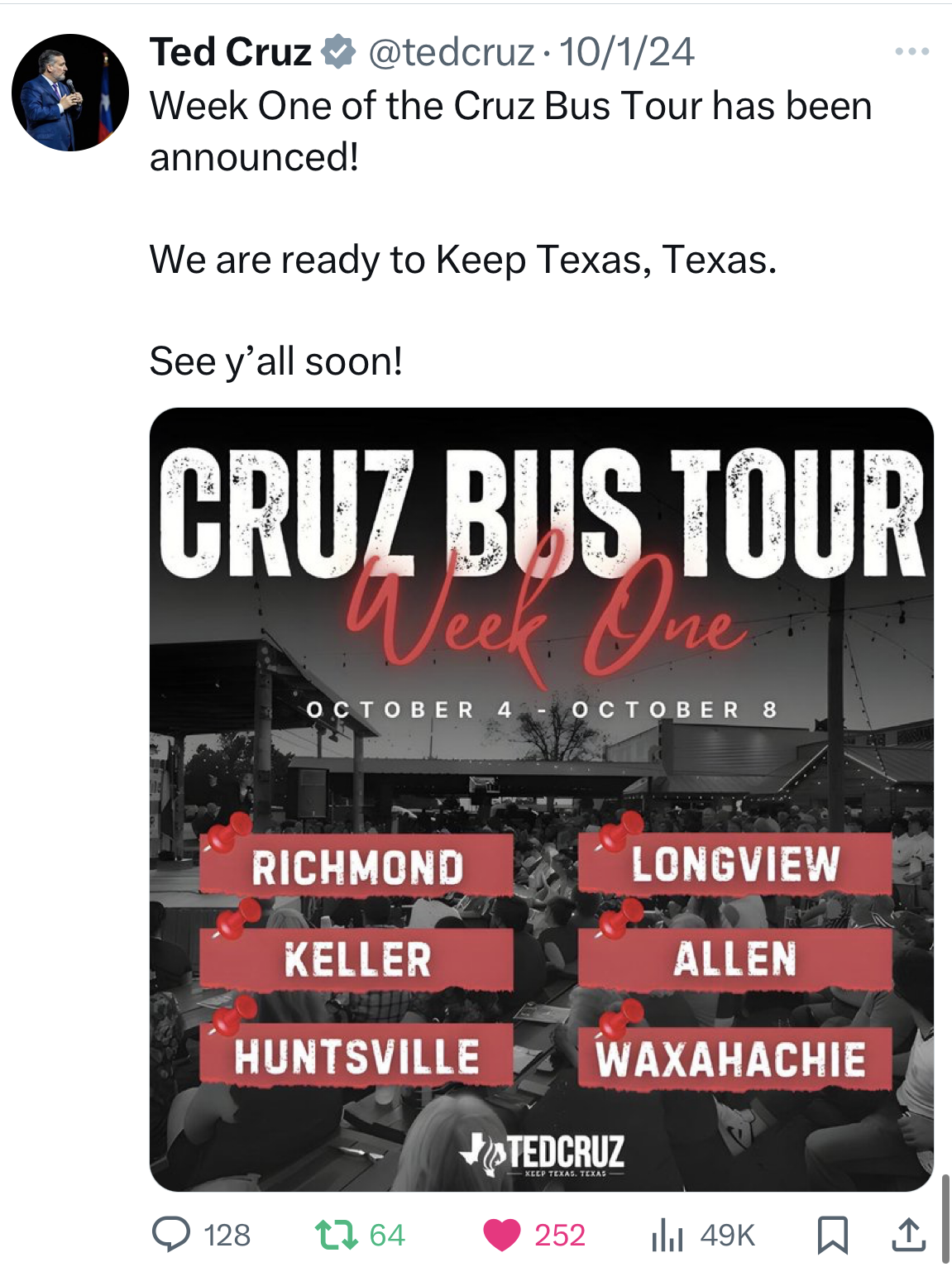 This section showcases the dynamic visuals I created to engage voters and unify our campaign messaging. From designing the campaign bus wrap to crafting rally signs and event materials, I worked to create a cohesive and impactful visual identity for Senator Ted Cruz’s campaign across Texas.